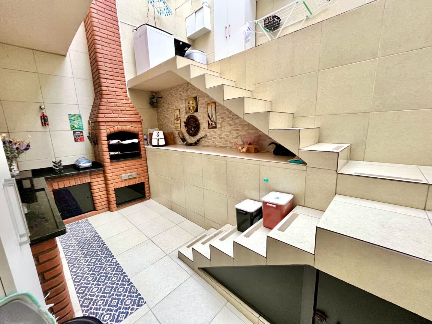 Espaço gourmet completo com churrasqueira, banheiro, lavanderia e solarium com guarda-corpo em vidro